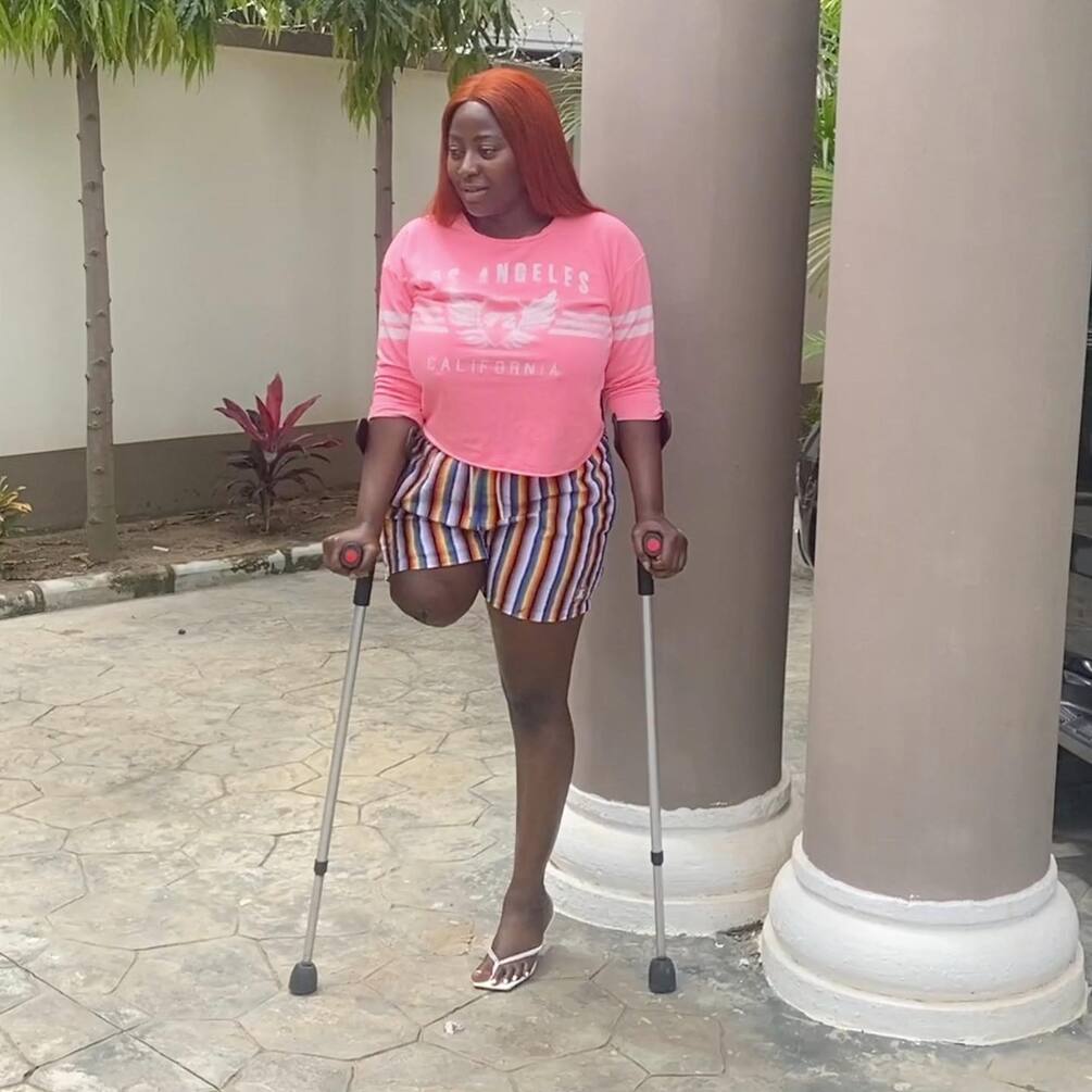 Doris as redhead crutching near her apartment! Well visible stumpy and high heel! Watch this! Watch preview!